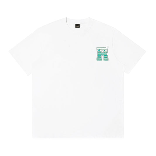 RickyisClown Tiffany Blue Rhinestone Smiley Graphic T-Shirt RIC蒂芙尼烫钻撕裂笑脸短袖