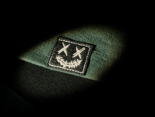 RickyisClown Ripped Smiley Bordir Suede Kemeja RIC撕裂笑脸刺绣麂皮短袖衬衫