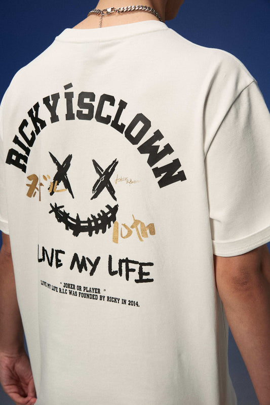 habis terjualRickyisclown Gaya Retro Joker Smiley Tee RIC复古排版撕裂笑脸T恤